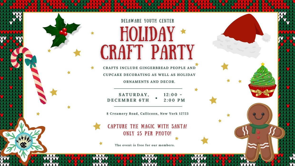 We are excited to invite you and your little ones to our Annual Children's Holiday Party on Saturday, December 6th, from noon to 2 PM! Join us for a festive day filled with fun crafts, delicious treats, and holiday cheer—all at no charge to participate!